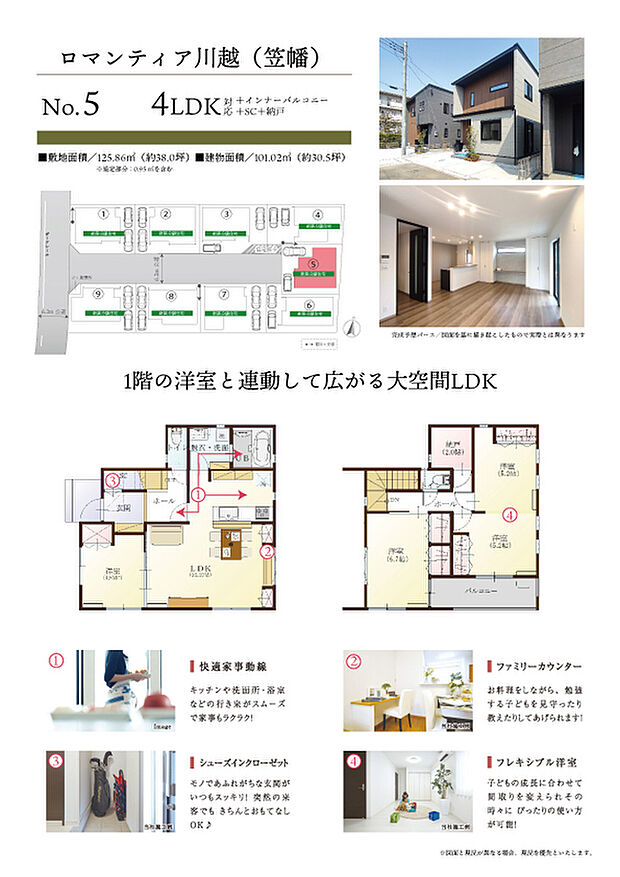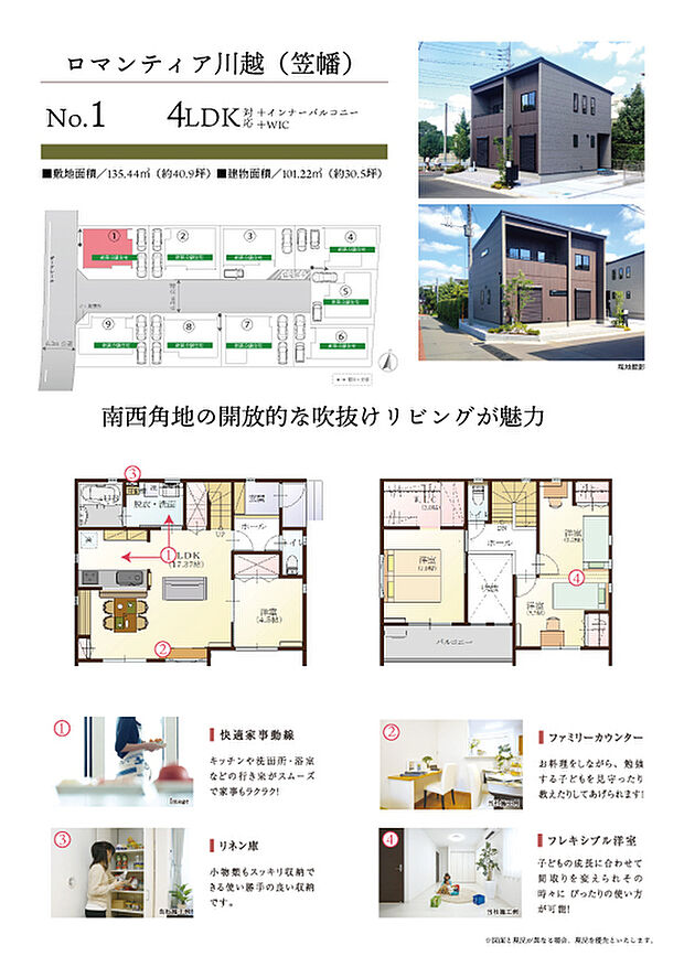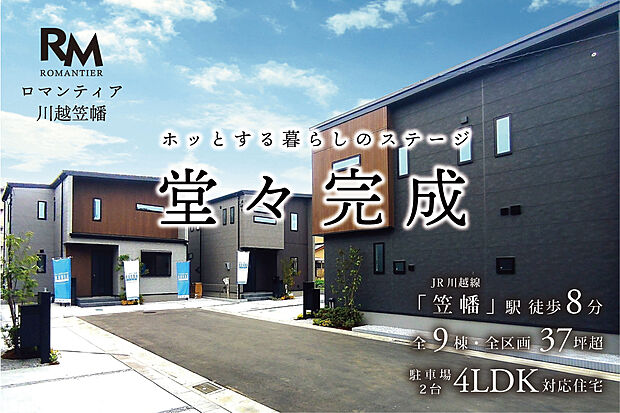 JR笠幡駅まで徒歩8分。安心と心地よさが同居する分譲地が誕生。全区画土地面積は37坪以上。総9区画の街です。駐車スペースは2台以上可能。新築分譲住宅は3,480万円~。 カーナビ住所は川越市笠幡3999付近