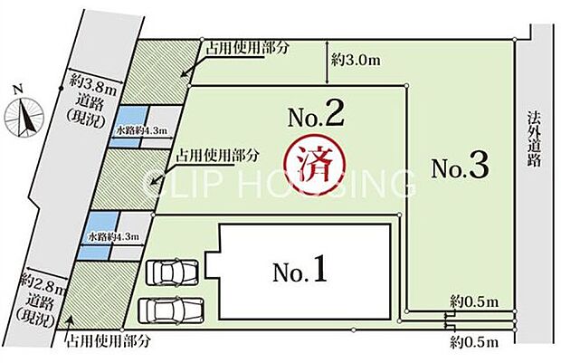 • 「建築条件付き土地」の「建物プラン例」は、土地購入者の設計プランの一例であり、プランの採用可否は任意です。