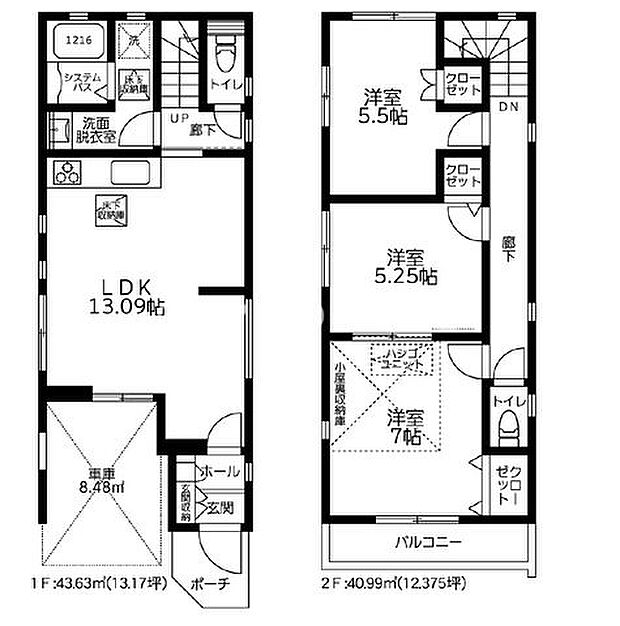 | 間取り | 3LDK 間取り内訳:リビングダイニングキッチン 13帖(1階)・洋室 7帖(2階)・洋室 5.3帖(2階)・洋室 5.5帖(2階) |