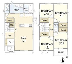 | 間取り | 3LDK(1号地、2号地) | 建物階 | 軽量鉄骨2階建(2戸) |