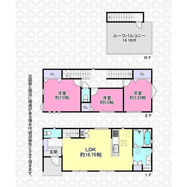 ルーフバルコニー14.18m2あり/南西角地につき陽当り良好/住環境良好/リビングイン階段