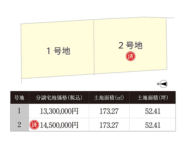 販売区画数 2区画 最多価格帯 1,330万円(残り1区画、1号地)