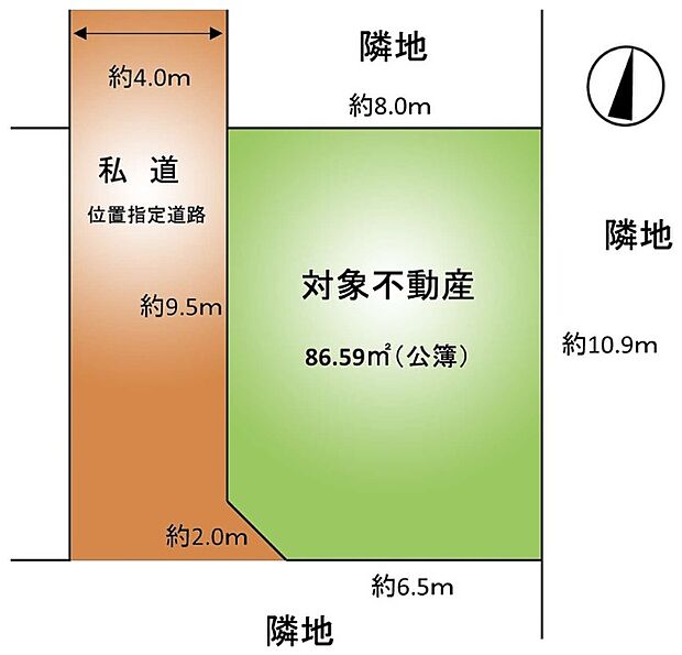 | 私道負担 | 134.5m2私道負担割合:13450分の1317 | 用途地域 | 工業地域 |
