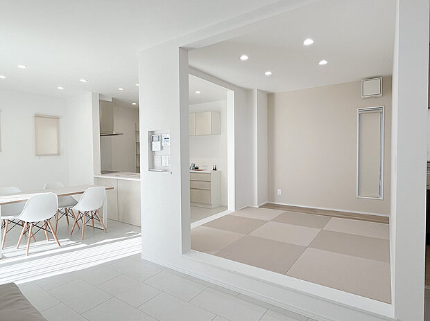 【完成済み!見学できます!】エアコン2台 +全室カーテン+照明器具付。 リビングに加えて小上がりの和室も隣接した、共有スペースが広々としている間取りです 仲介手数料無料。資料請求/見学予約受付中。