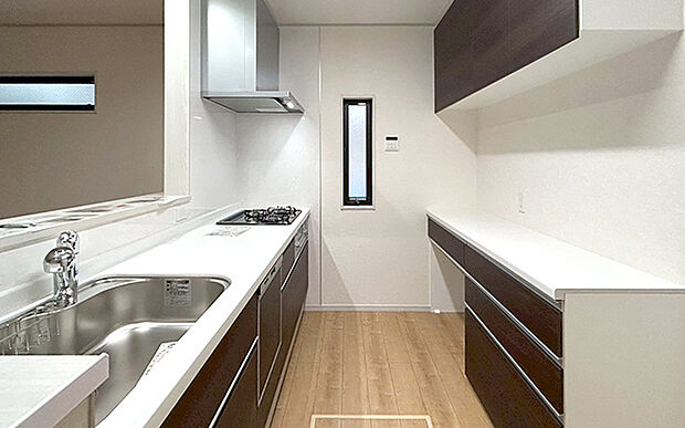 ■保育園まで徒歩4分(290m~310m)、小学校まで徒歩8分(630m~640m)とお子様も無理なく通園・通学ができます。 ■キッチンには大きなパントリーを完備!調理器具や食器もたっぷり収納! ■対面式キッチンはLDKを見渡せるので小さなお子様のいるご家庭も安心です!