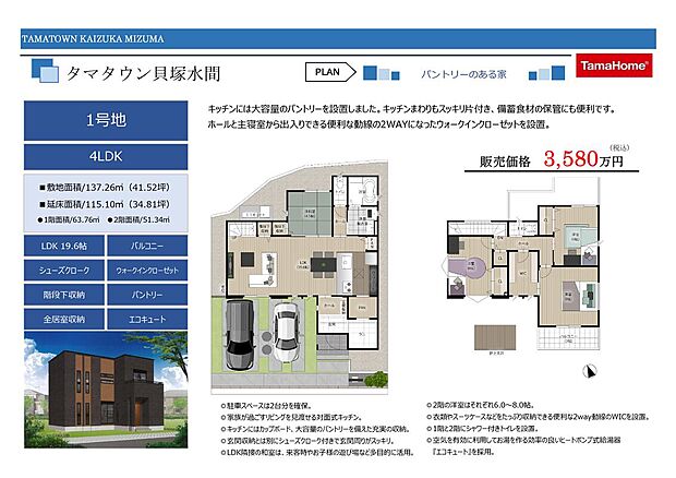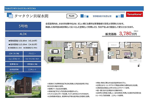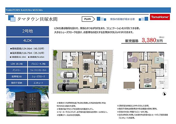 水間鉄道線「水間観音駅」徒歩3分 長期優良住宅、駐車場2台、4LDK 陽当り良好