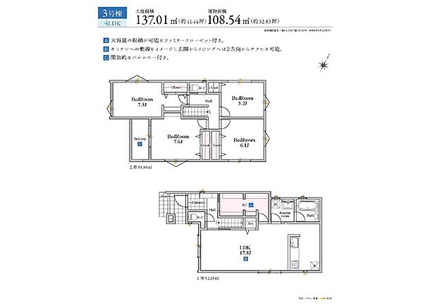 | 間取り | 4LDK 間取り内訳:リビングダイニングキッチン 17.8帖・洋室 7.6帖・洋室 7.3帖・洋室 6.1帖・洋室 5.2帖 |
