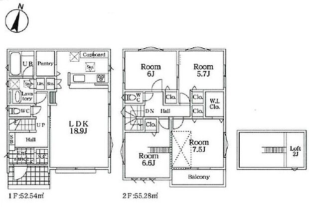 | 間取り | 4LDK 間取り内訳:リビングダイニングキッチン 18.9帖(1階)・洋室 7.5帖(2階)・洋室 6.6帖(2階)・洋室 6帖(2階)・洋室 5.7帖(2階) |