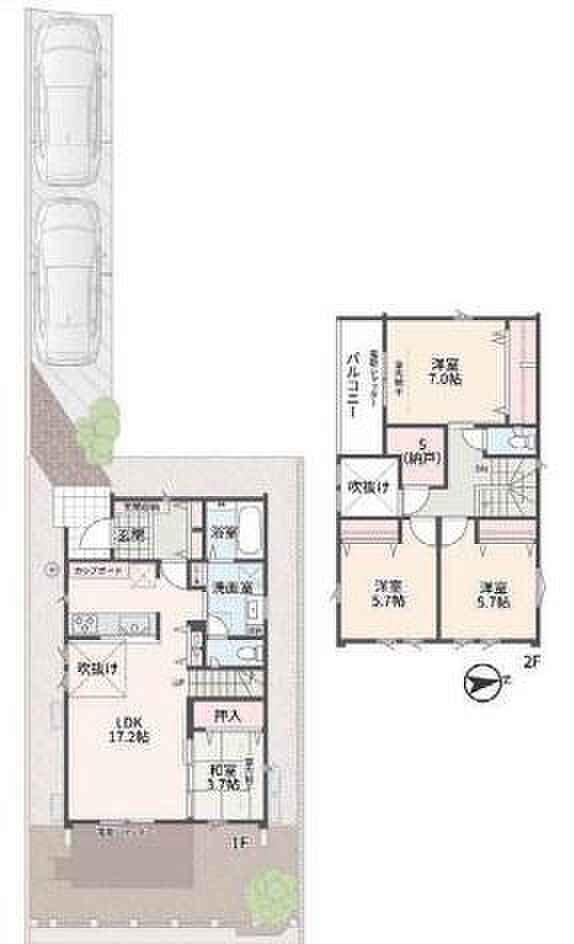 キッチンパントリー付き。吹抜け。リビング17帖以上。