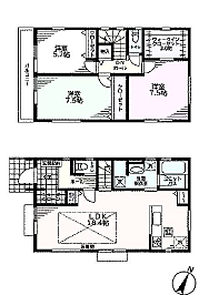 | 間取り | 3LDK 間取り内訳:リビングダイニングキッチン 18.4帖(1階)・洋室 7.5帖(2階)x2・洋室 5.2帖(2階) |