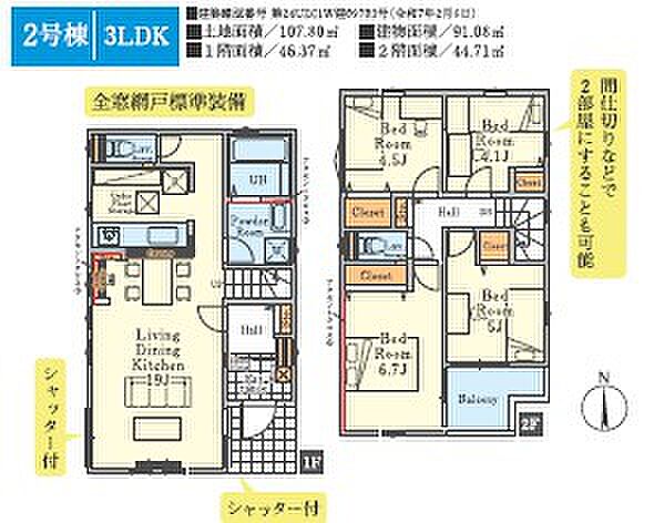 | 間取り | 3LDK 間取り内訳:リビングダイニングキッチン 19帖(1階)・洋室 6.7帖(2階)・洋室 5帖(2階)・洋室 4.5帖(2階)・洋室 4.1帖(2階) |