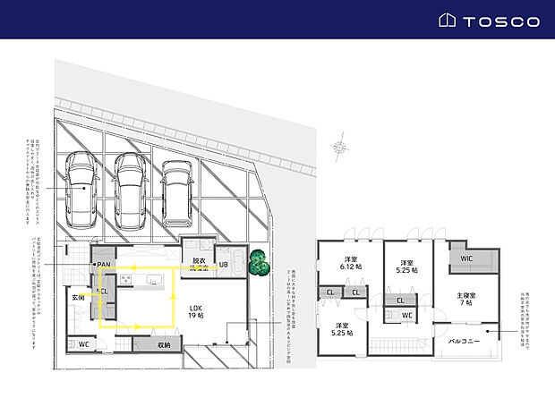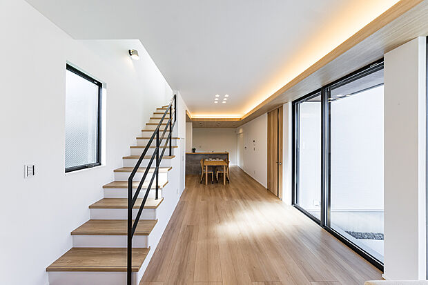 ■TOSCOの分譲住宅■ 洗練された外観デザインと帰宅の家事動線■ ■1階リビング天井高2.7mで高~い天井 ■リビングシャッターは電動シャッター ■階段部分に一部鉄骨アイアン階段 断熱材は吹付ウレタン断熱材を使用。壁内に隙間なく断熱材を敷き詰めることで、熱欠損を防ぎます。加えて、遮熱シートで家全体を包み込むことで輻射熱から室内環境を守ります。