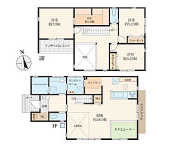 | 間取り | 3LDK 間取り内訳:リビングダイニングキッチン 24.5帖(1階)・洋室 5.2帖(2階)・洋室 5.2帖(2階)・洋室 7帖(2階) |
