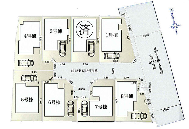 8号棟:北4.5m 東8.7m