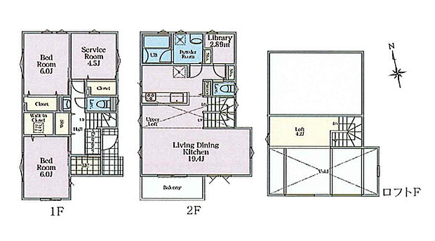 設備:公営水道 都市ガス 下水 駐車場1台 システムキッチン ウォークインクローゼット ロフト カウンタキッチン 全居室収納 クローゼット