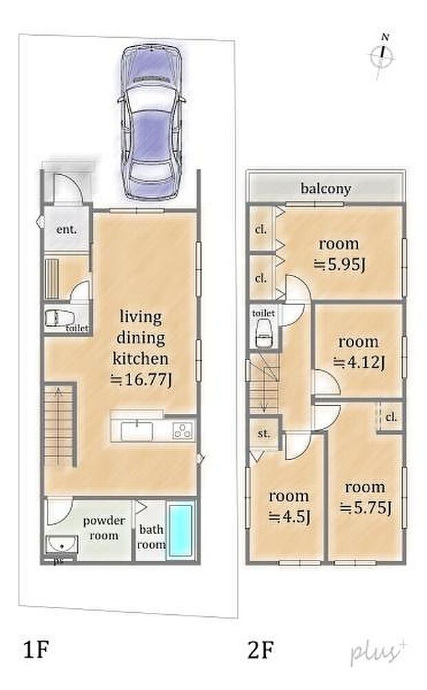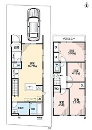 | 間取り | 4LDK 間取り内訳:リビングダイニングキッチン 16.7帖(1階)・洋室 5.9帖(2階)・洋室 5.7帖(2階)・洋室 4.5帖(2階)・洋室 4.1帖(2階) |