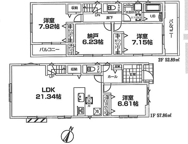 | 間取り | 4LDK 間取り内訳:リビングダイニングキッチン(1階)・洋室 6.6帖(1階)・洋室 7.9帖(2階)・洋室 7.1帖(2階)・洋室 6.2帖(2階) |
