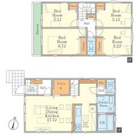 | 間取り | 4LDK 間取り内訳:リビングダイニングキッチン 17.7帖・洋室 6.7帖・洋室 5.2帖・洋室 5.1帖・洋室 5.1帖 |