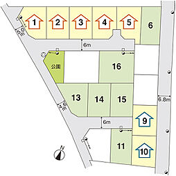 | 土地面積 | 201.56m2(9号地)、241.67m2(12号地)、241.39m2(14号地) 私道負担なし | ||