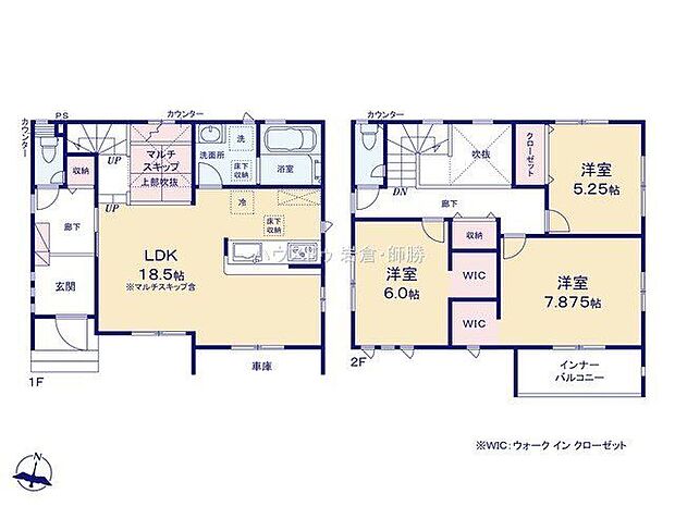 | 間取り | 3LDK 間取り内訳:リビングダイニングキッチン 18.5帖(1階)・洋室 7.8帖(2階)・洋室 6帖(2階)・洋室 5.2帖(2階) |