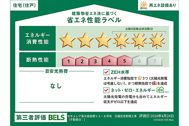 ※この物件の省エネ性能がわかる「省エネ性能ラベル」です。省エネ性能ラベルは2024年4月以降に建築確認申請した物件などで表示しています。
