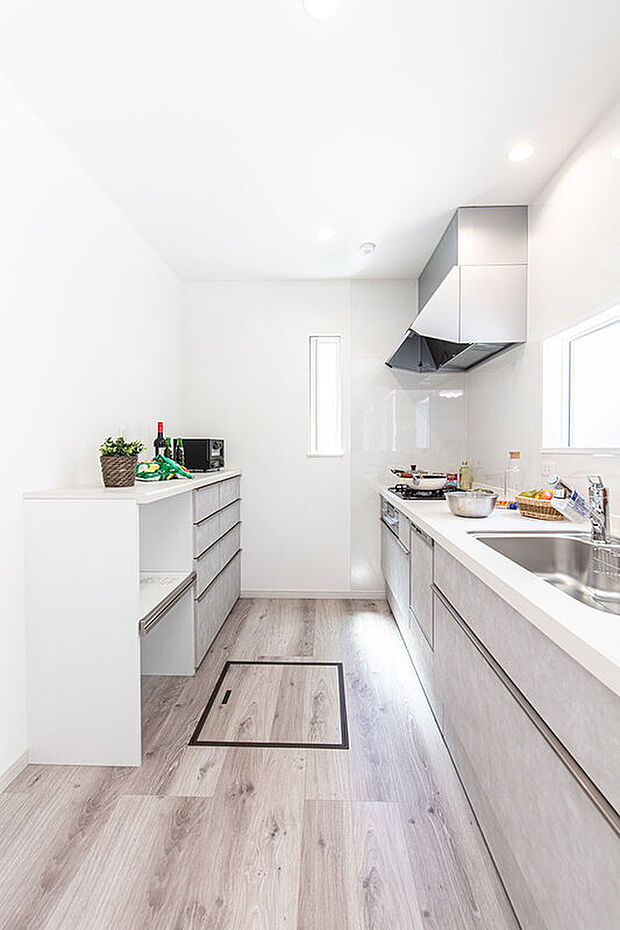 • ビルトイン型食器洗い乾燥機を完備したシステムキッチン。