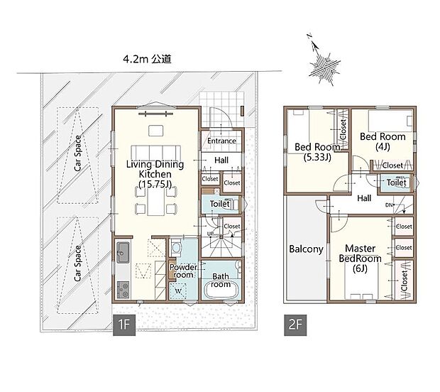 • 「建築条件付き土地」の「建物プラン例」は、土地購入者の設計プランの一例であり、プランの採用可否は任意です。