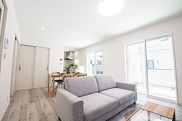 • 西側壁面に掃き出し窓をふたつ設けた明るい15.75帖LDK。