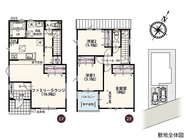• 「建築条件付き土地」の「建物プラン例」は、土地購入者の設計プランの一例であり、プランの採用可否は任意です。