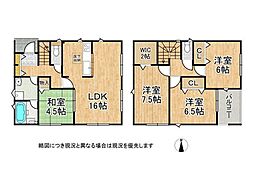 | 間取り | 4LDK 間取り内訳:リビングダイニングキッチン 16帖(1階)・和室 4.5畳(1階)・洋室 6帖(2階)・洋室 6.5帖(2階)・洋室 7.5帖(2階) |