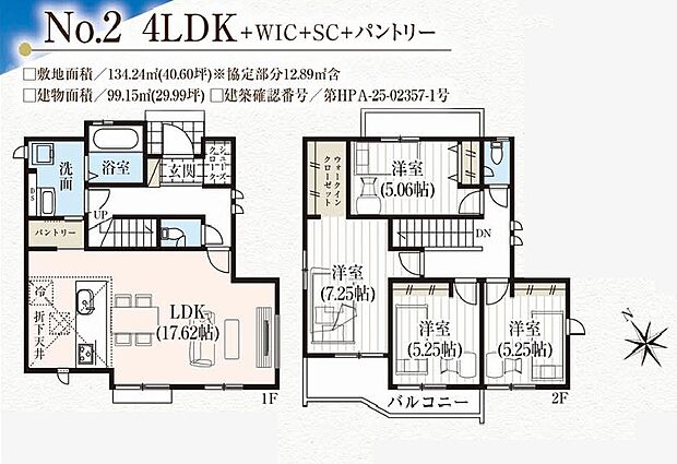 | 土地面積 | 134.24m2(協定部分12.89m2含む) | ||