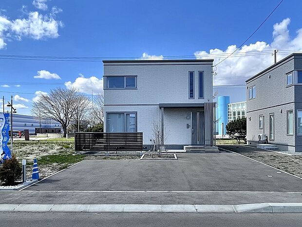 • ホワイトの外壁にシルバーの窓サッシを合わせた外観(2025年4月撮影)