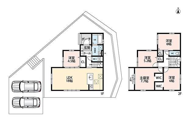 • 「建築条件付き土地」の「建物プラン例」は、土地購入者の設計プランの一例であり、プランの採用可否は任意です。