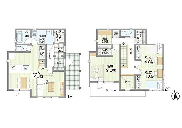 | 間取り | 3SLDK 間取り内訳:リビングダイニングキッチン 17.8帖・洋室 8帖・洋室 4.8帖・洋室 4.8帖・その他 2帖 |