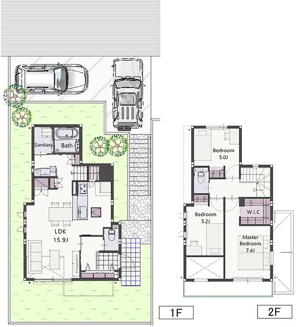 | 間取り | 3LDK、3LDK+S | 建物階 | 鉄骨ラーメンユニット構造2階建 |