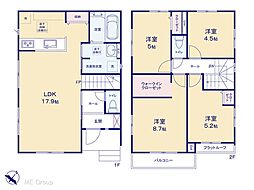 | 間取り | 4LDK 間取り内訳:リビングダイニングキッチン 17.9帖(1階)・洋室 8.7帖(2階)・洋室 5.2帖(2階)・洋室 5帖(2階)・洋室 4.5帖(2階) |