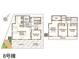 | 間取り | 4LDK 間取り内訳:リビングダイニングキッチン 16.8帖(1階)・洋室 5.5帖(1階)・洋室 9.2帖(2階)・洋室 8.1帖(2階)・洋室 7.5帖(2階) |