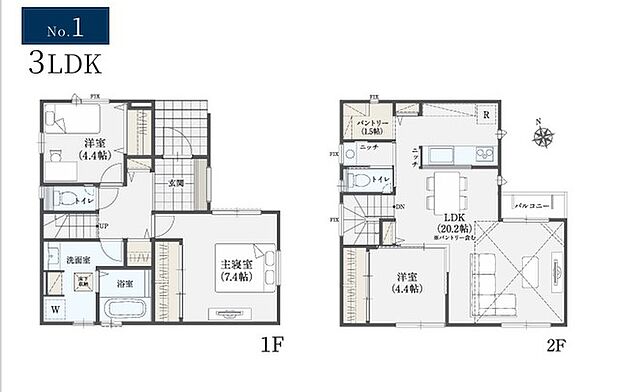 | 間取り | 3LDK 間取り内訳:リビングダイニングキッチン 20.2帖・洋室 7.4帖・洋室 4.4帖・洋室 4.4帖 |