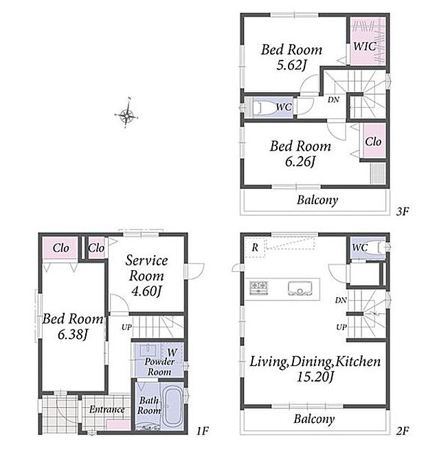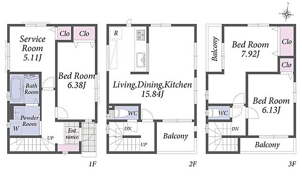 間取り 3LDK+S~4LDK 建物階 木造、地上3階建て