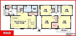 | 間取り | 3LDK 間取り内訳:リビングダイニングキッチン 14.6帖(1階)・洋室 5.6帖(2階)・洋室 4.4帖(2階)・洋室 4.4帖(2階) |