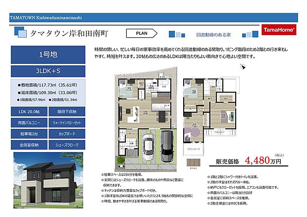 • 「建築条件付き土地」の「建物プラン例」は、土地購入者の設計プランの一例であり、プランの採用可否は任意です。