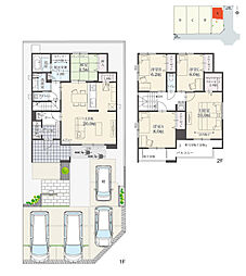 | 間取り | 4LDK 間取り内訳:リビングダイニングキッチン 18.5帖(1階)・和室 3畳(1階)・洋室 5帖(1階)x2・洋室 6帖(1階) |