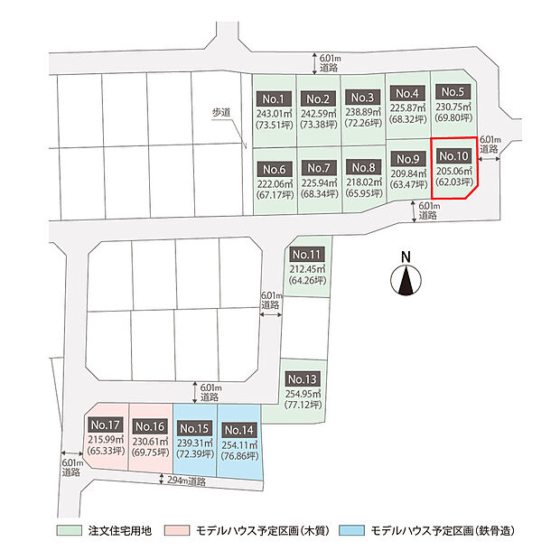 | 土地面積 | 205.06m2 (1区画) ~ 254.95m2(1区画) | ||