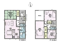 | 間取り | 3LDK 間取り内訳:リビングダイニングキッチン 17.8帖(1階)・洋室 4.6帖(2階)x2・洋室 7.4帖(2階) |