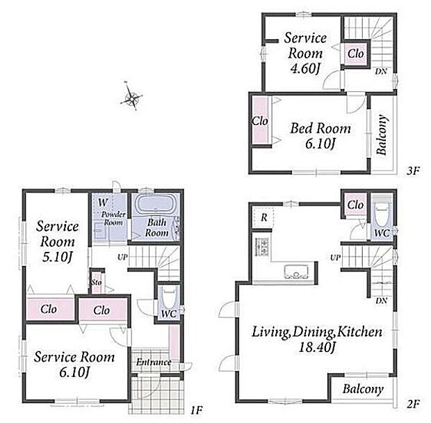 | 間取り | 1LDK+3S~2LDK+2S | 建物階 | 木造、地上2~3階建て |
