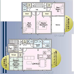 | 間取り | 4LDK 間取り内訳:リビングダイニングキッチン 16.2帖(1階)・和室 4.5畳(1階)・洋室 7.7帖(2階)・洋室 6.5帖(2階)・洋室 5帖(2階) |