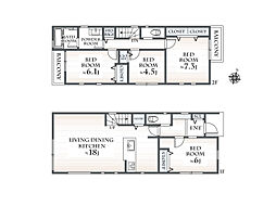 | 間取り | 4LDK 間取り内訳:リビングダイニングキッチン 18.3帖・洋室 6帖・洋室 6.5帖・洋室 4.5帖・洋室 7.6帖 |