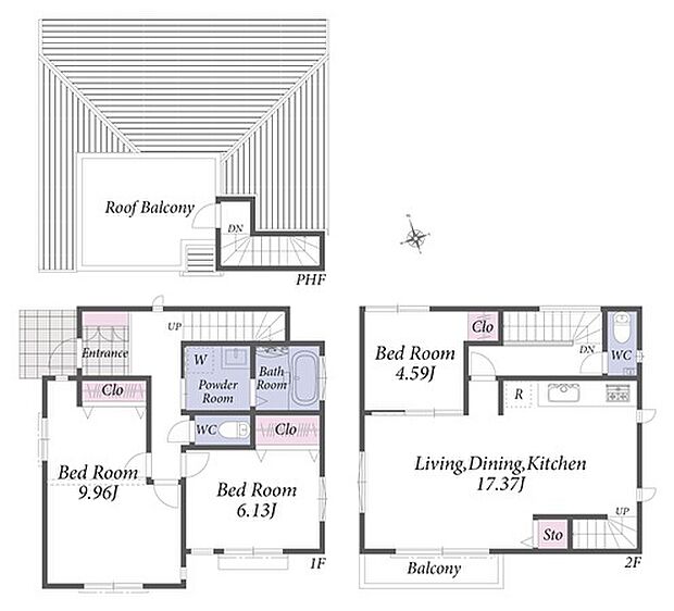 家族が集まるLDKはゆとりある17畳♪ルーフバルコニー付きの新築住宅です。