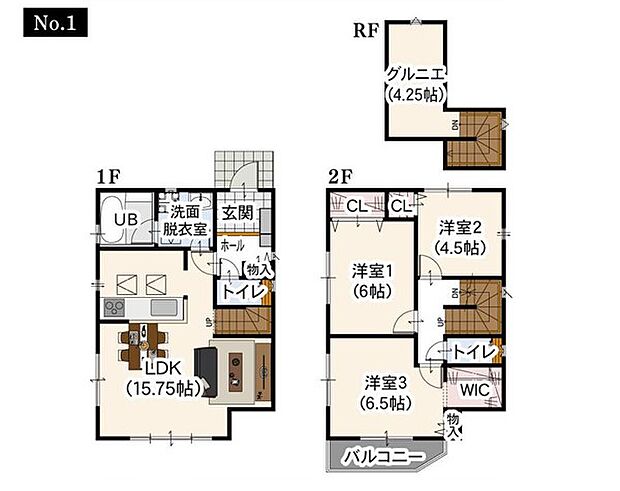 | 間取り | 3LDK 間取り内訳:リビングダイニングキッチン 15.7帖・洋室 6.5帖・洋室 6帖・洋室 4.5帖 |