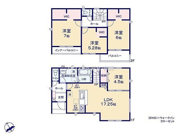 | 間取り | 4LDK 間取り内訳:リビングダイニングキッチン 17.2帖(1階)・洋室 4.5帖(1階)・洋室 7帖(2階)・洋室 6帖(2階)・洋室 5.2帖(2階) |